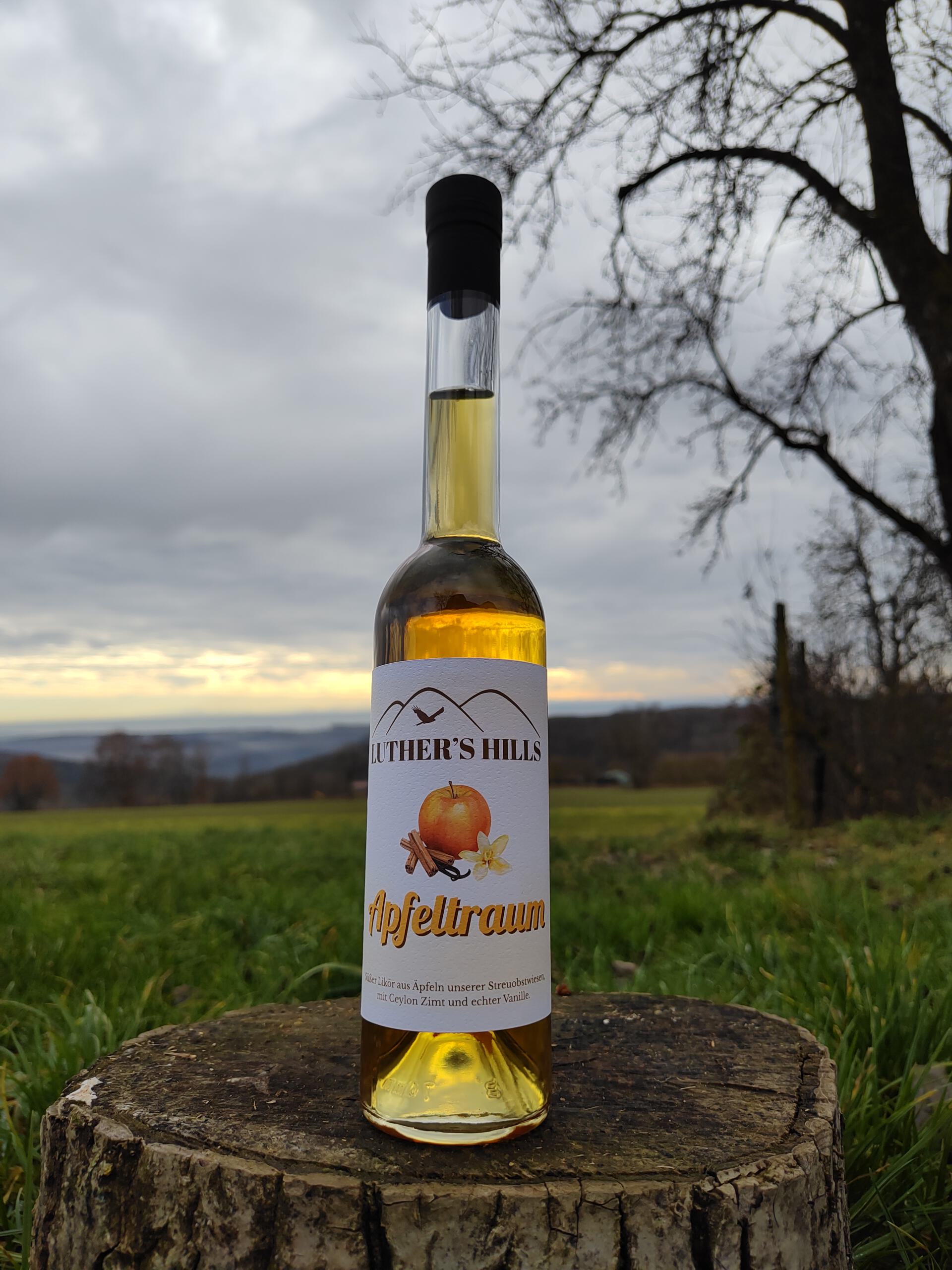 Apfellikör, hergestellt nach Omas Rezept aus eigenen Äpfeln. Mit Zimt und Vanille verfeinert. Ein süßwarmer Traum für kalte Wintertage. Der Trester aus der Mostherstellung wird in selbst gebranntem Apfelbrand angesetzt. Nach der Extraktion der lieblichen Apfelaromen wird der Ansatz gefiltert, mit Apfelsaft auf Trinkstärke eingestellt und mit Zuckersirup gesüßt. Wie ihn schon die Oma gemacht hat.